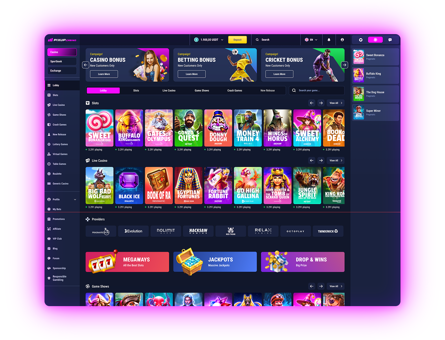 Extensive B2B platform for Casino, Sportsbook, Sports Exchange, and Seamless Payment Integration